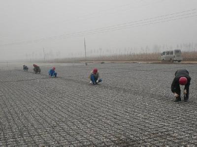 3、接鋪:以卷長(zhǎng)為單位作為鋪設(shè)的段長(zhǎng),應(yīng)鋪格柵的段長(zhǎng)內(nèi)鋪滿以后,再整體檢查一次鋪設(shè)質(zhì)量,然后接著鋪設(shè)下一段,下一段鋪設(shè)時(shí),格柵與格柵以重疊一個(gè)網(wǎng)格凈距為搭接長(zhǎng)度,并用綁線固定后繼續(xù)向前進(jìn)方向鋪第二段。依次類推,操作要求同前。
